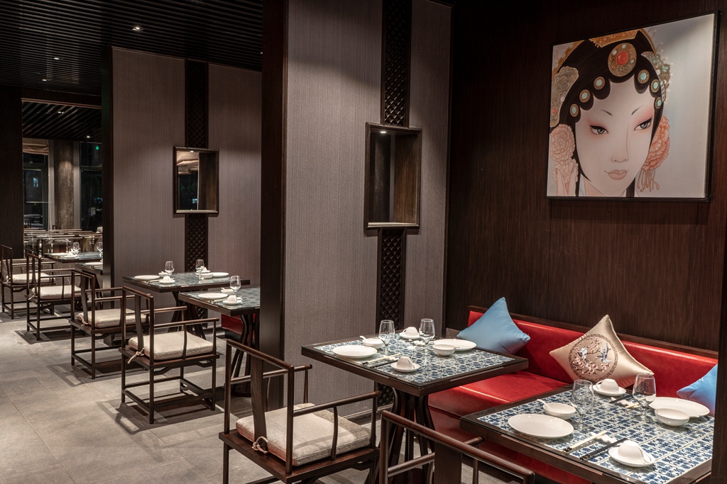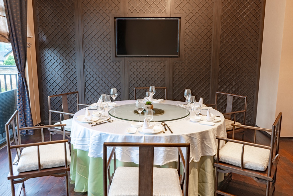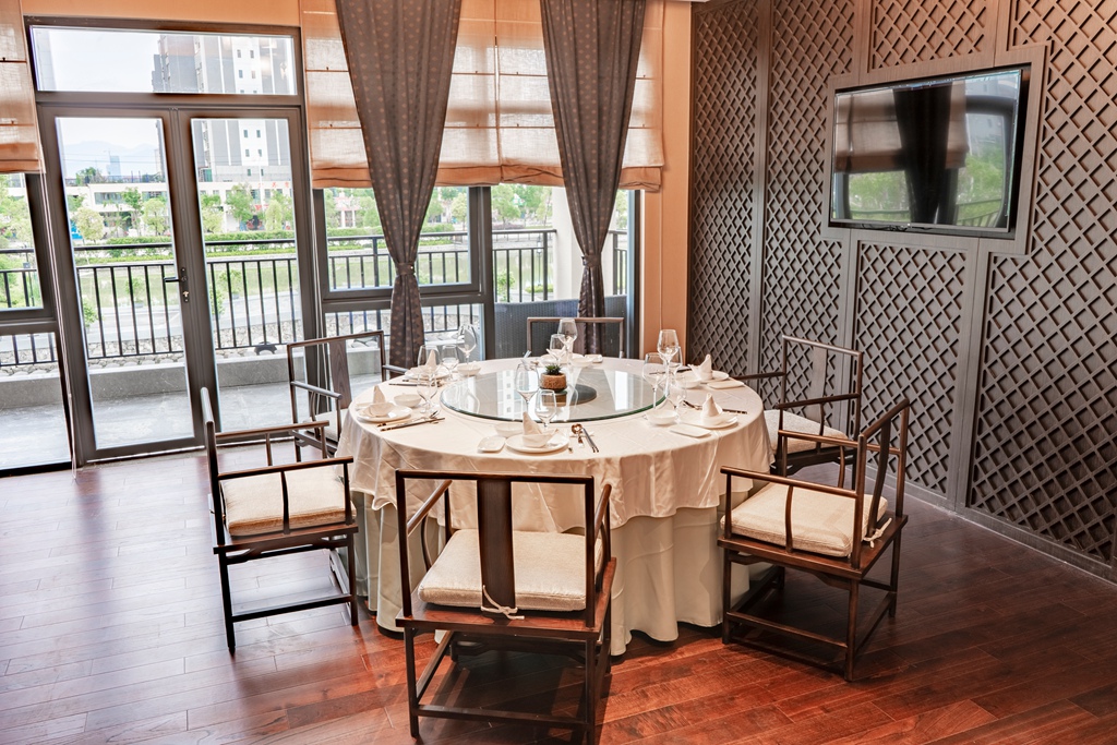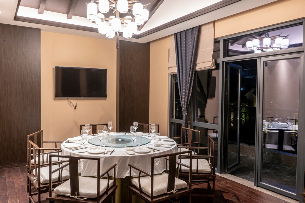 包厢置于自然的怀抱之中,食客便拥有了广阔的视野。同时,窗外郁郁葱葱的景致成为一道天然的背景。站在包厢的阳台,便可远眺那得以新生的“老屋围”。