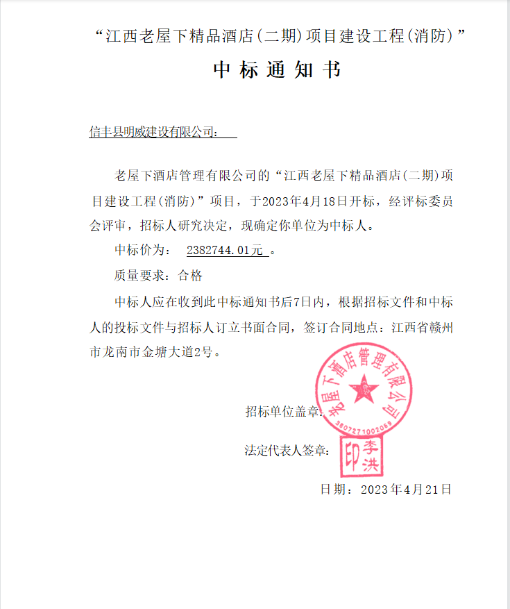 江西老屋下精品酒店(二期)项目建设工程(消防